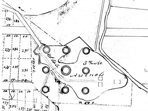 Site plan of seven magazines remaining in April, 1934.