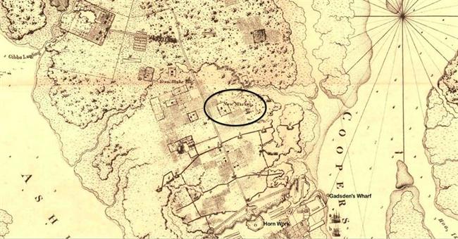 | “Sketch of Operations Before Charlestown Copied from Sir Henry Clinton’s Map, 1780.” Courtesy of Alabama Maps http://alabamamaps.ua.edu |