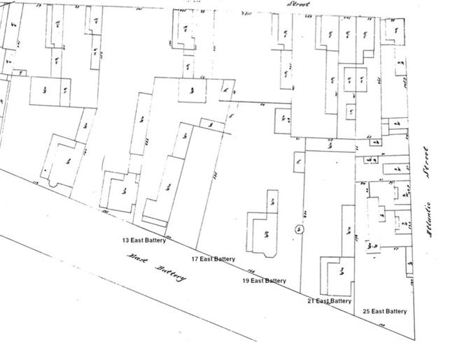 East Battery from Atlantic Street to South Battery, 1944. During World War II, the U. S. Navy used the Visanska House as offices.